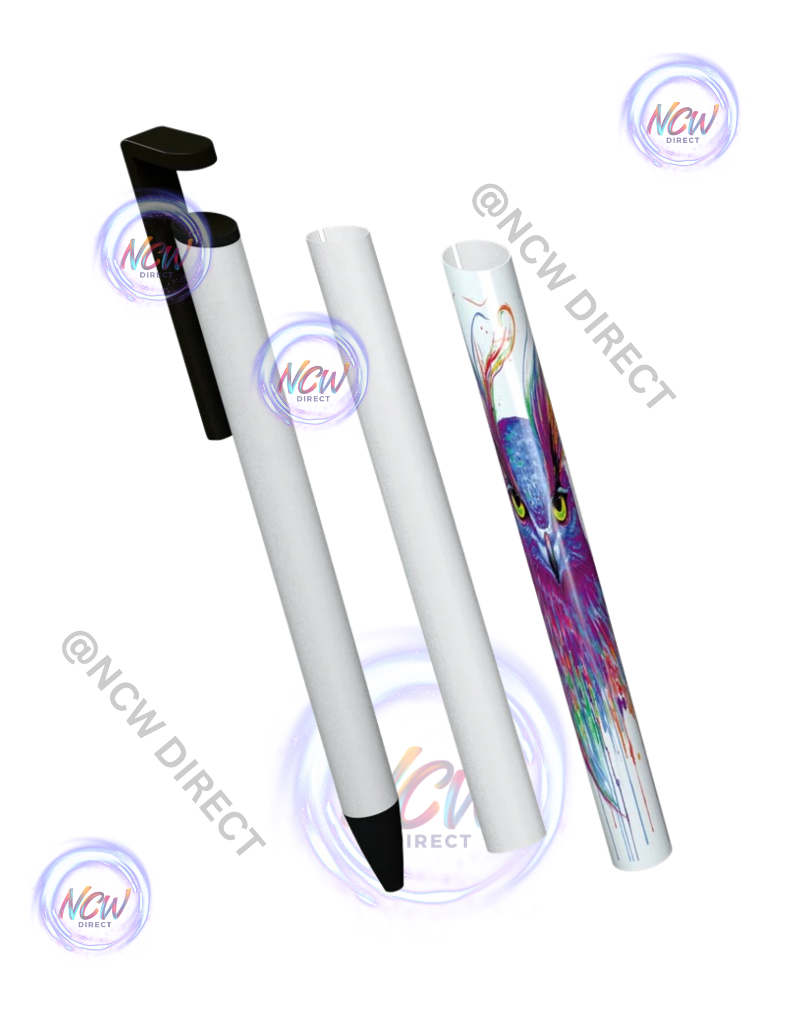 Sublimatable aluminium barrel, with ballpoint pen and shrink wrap.