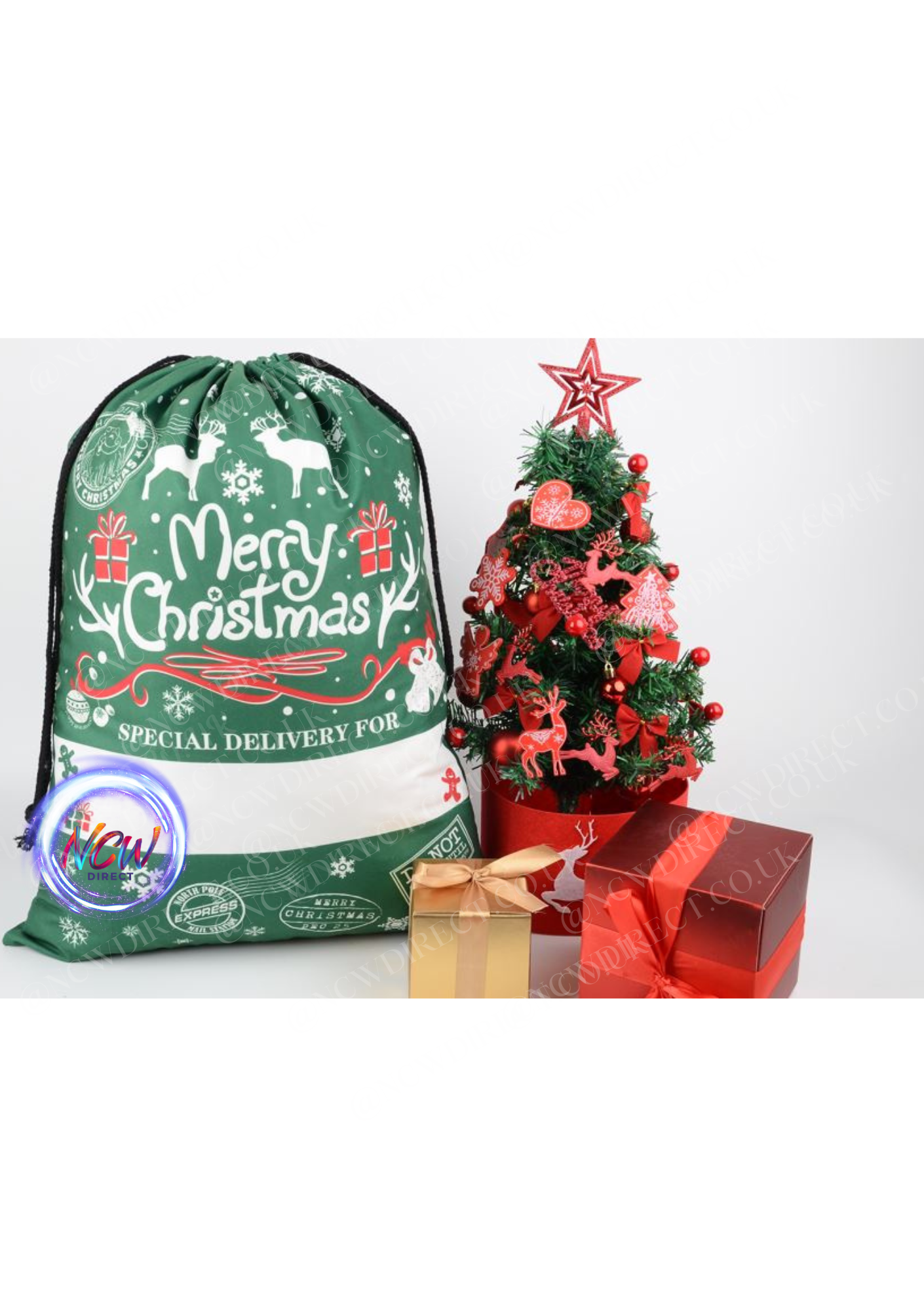 pre printed Large Xmas Gift Bag Linen Drawstring Christmas Sack,with space for personalisation