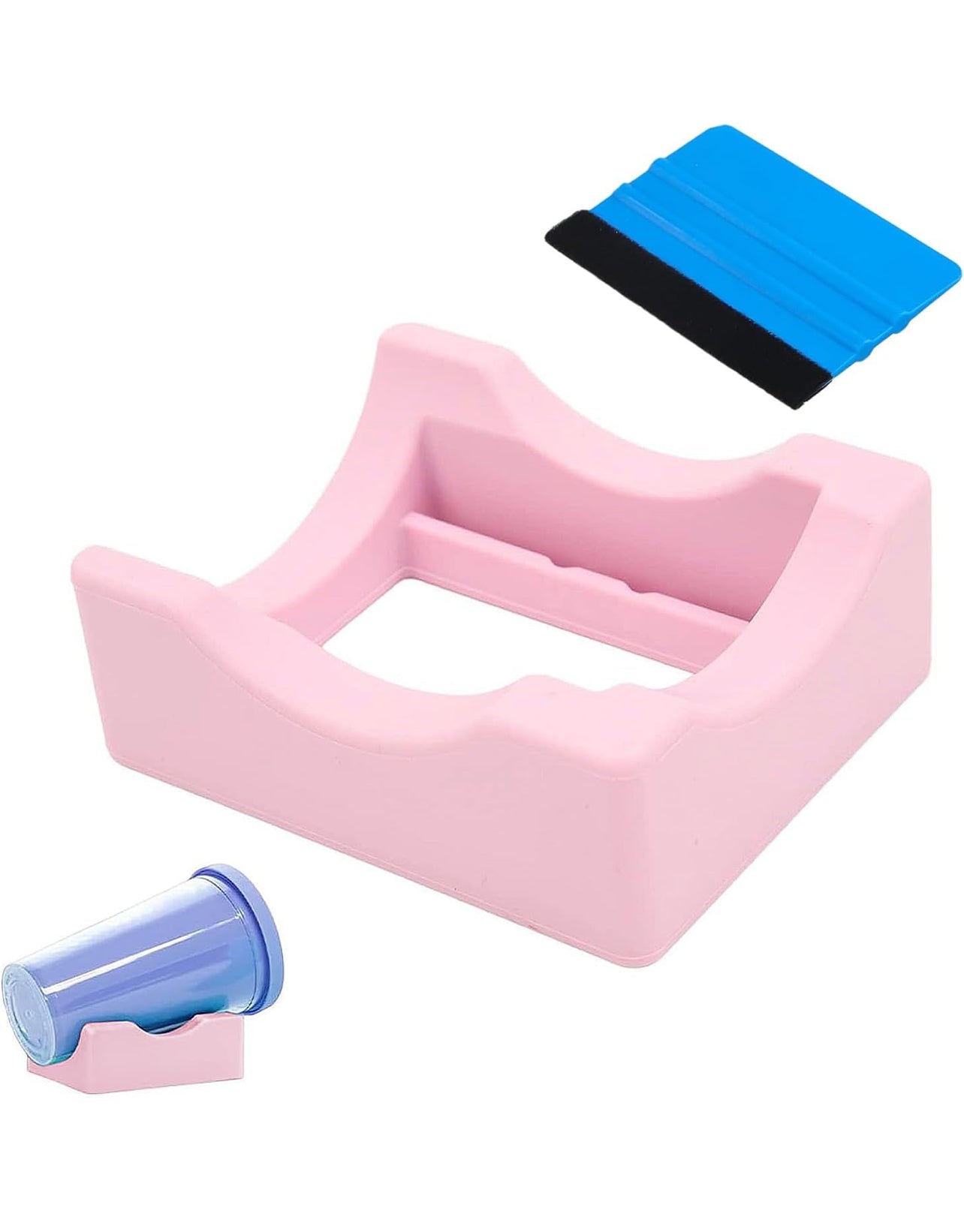 Silicone Cup Cradle with Built-in Slot for Crafts Use to Apply Vinyl Decals for Tumblers, Small Stand Cup Holder with Felt Edge Squeegee for Bottles