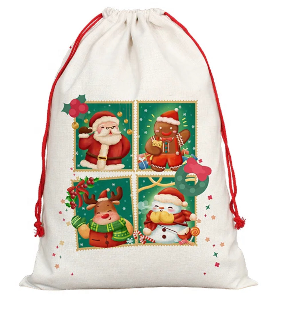 50* 70cm,A high quality sublimation linen material, Christmas gift sack with red draw string ready to be printed on to in time for the big day.