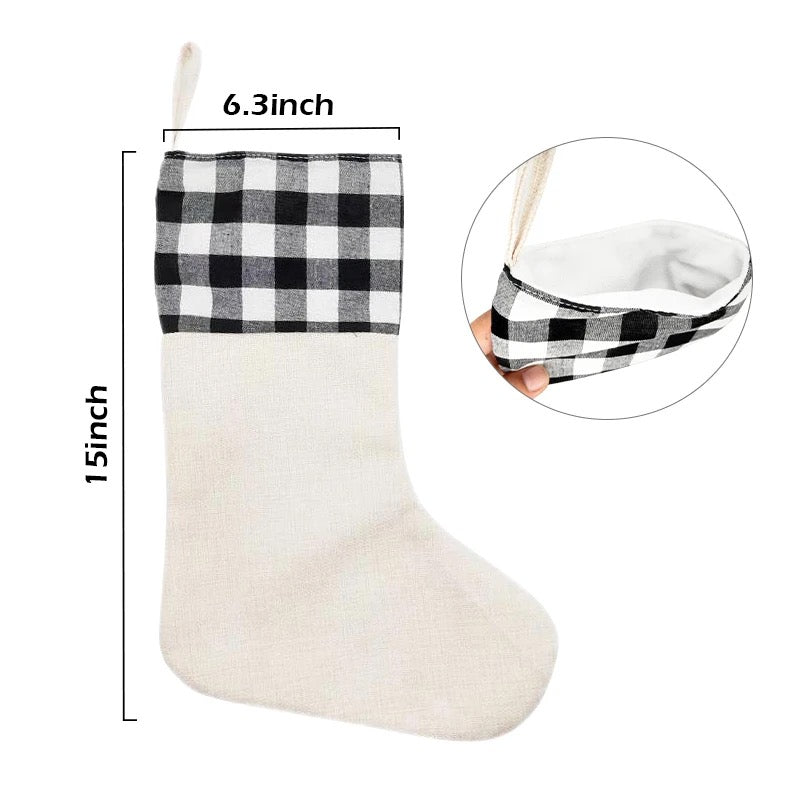 This Sublimation Stocking features a soft top opening for a seamless look. Crafted from high-quality linen, perfect for sublimation printing, allowing you to customise it with any image or text for a thoughtful gift for friends and family. Approximately 15inch x6.3inch