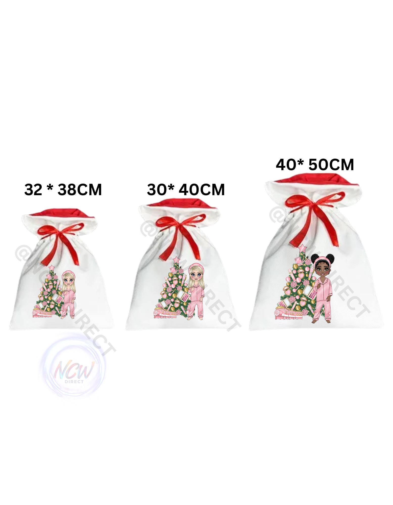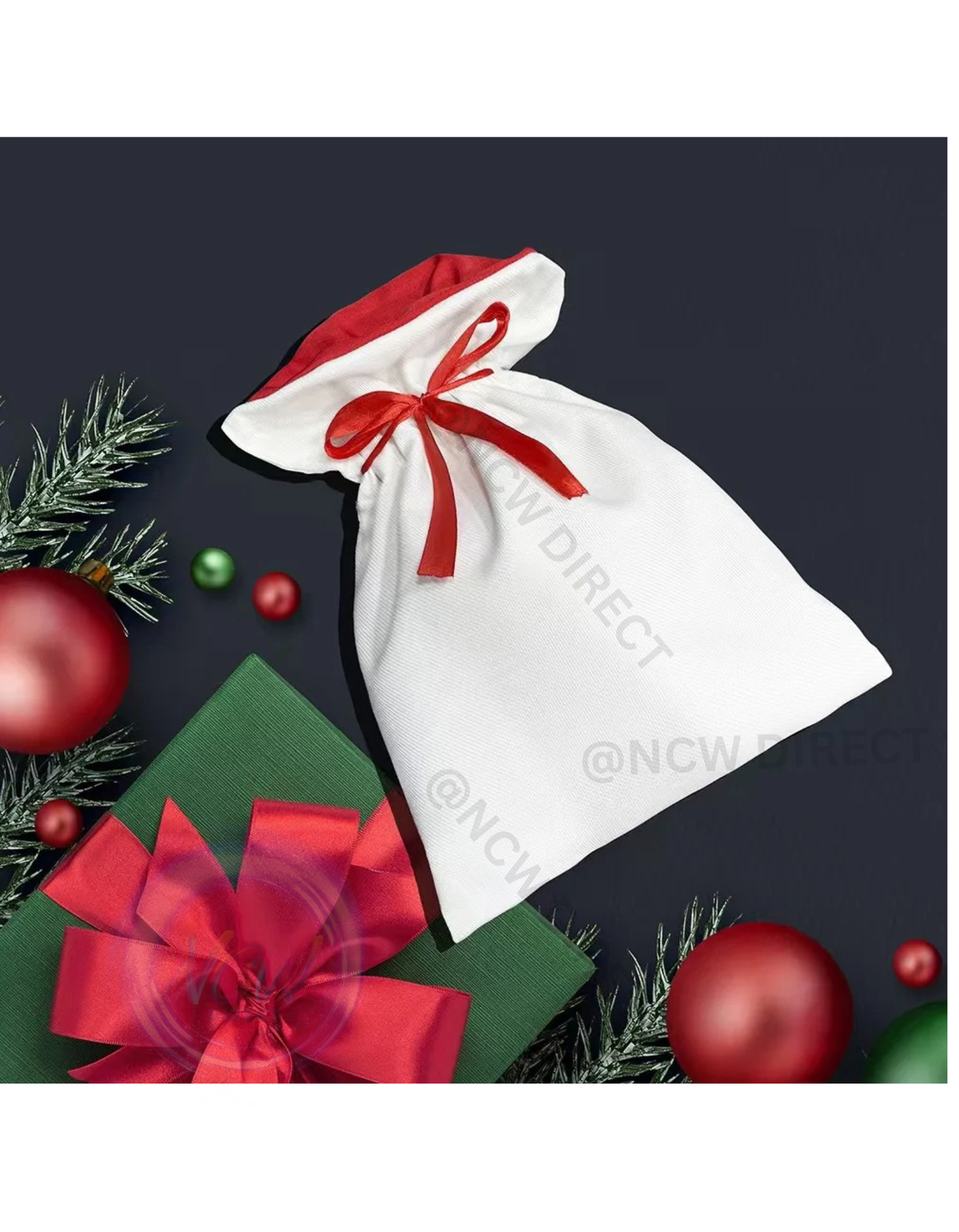 Sublimation White Drawstring sack with Red Ribbon tie With red lining 226g.